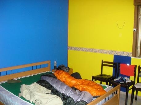 Dumbfounded with our never ending luck, we move our stuff inside and look around our new Sicilian summer home (for the night)--fancy us. We cooked potatoes and hot dogs over the giant coals from the bonfire, took refreshing water bottle baths outside near the intense warmth of the giant pile of embers, and went to sleep. |