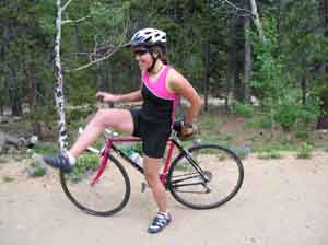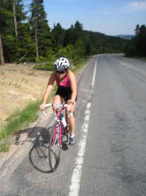 Joan suffering as she tries to maintain a decent speed on one of far too few training rides.