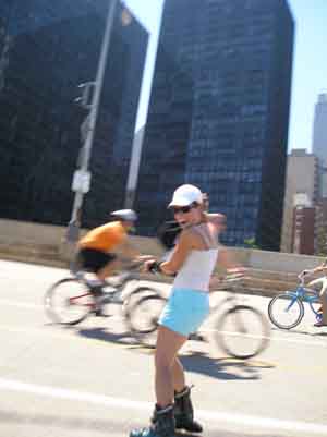 Joan showing off her rollerblading speed in Chicago