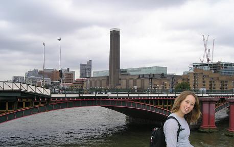 Joan on a bridge (the one built, designed, etc. all by women I think) over the Thames