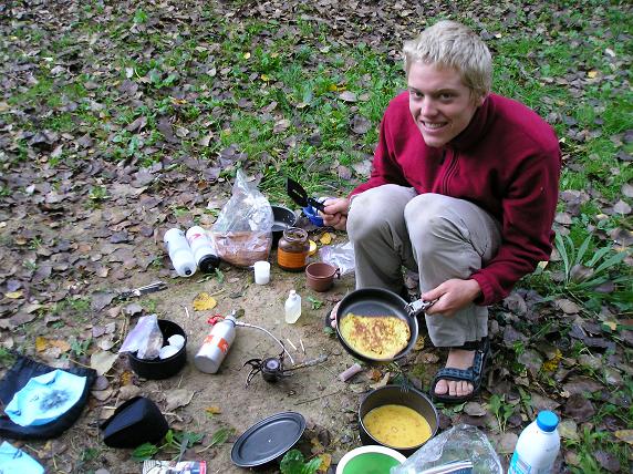 In the next twelve hours he proved himself to be one of the most generous, welcoming, unassuming and entertaining individuals either of us had met. 'I'm a SKYDIIIIVER' he kept proclaiming all evening as he pulled out endless stacks of magazines about parachutists out for us to add to our bags for some 'light' reading. We sat and chatted with him and his two sons for several hours. He was not put off at all by the fact that we were American, as we had been prepared to expect, but instead extended his hand across the table at this news and said he was very glad to meet us. I drew for them a map of the US, which turned out to be embarassing, and I entirely forgot Illinois and Mississippi. He gave us each a beer, ordered in a pizza, provided us with locks to lock our bikes (though we do have our own), and absolutely, adamently insisted that we sleep in his room rather than on the floor and set himself up on the couch. After many amusing debates about the US vs. England, the Crossbow vs. the Longbow and the style of helmets Viking used to wear, we locked and contained all of our things and made our way to the second floor of his house to lay our sleeping bags down on his bed.